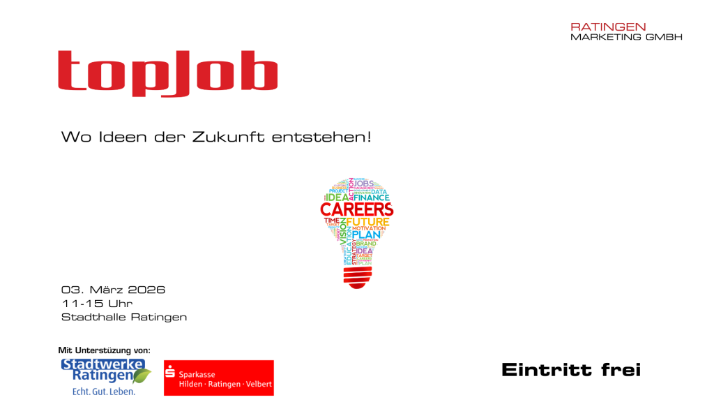 Du suchst eine Ausbildung, ein duales Studium oder ein Praktikum? Dann bist du bei der TopJob Messe in Ratingen genau richtig! Hier kannst du direkt mit Unternehmen, Hochschulen und Institutionen ins Gespräch kommen, dich über vielfältige Karrierewege informieren und wertvolle Kontakte für deine Zukunft knüpfen.